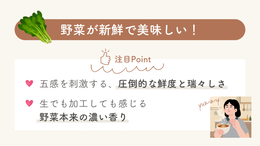 良い口コミ①:野菜が新鮮で美味しい!