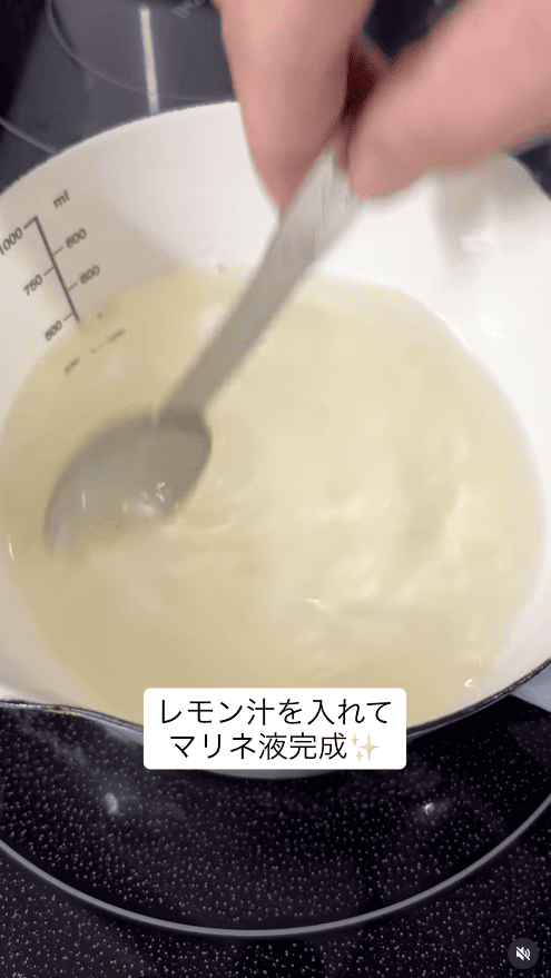 8.粗熱が取れたらレモン汁を加えて混ぜる。