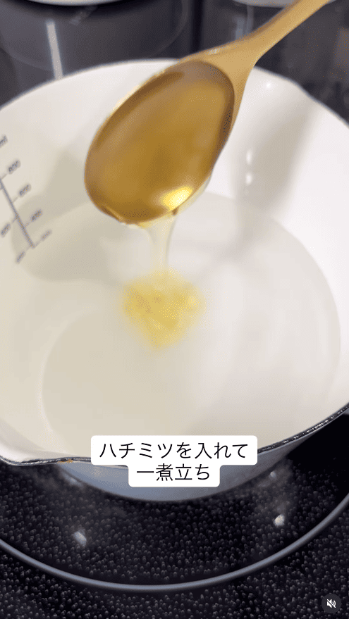6.小鍋に水・砂糖・はちみつを入れて火にかける。