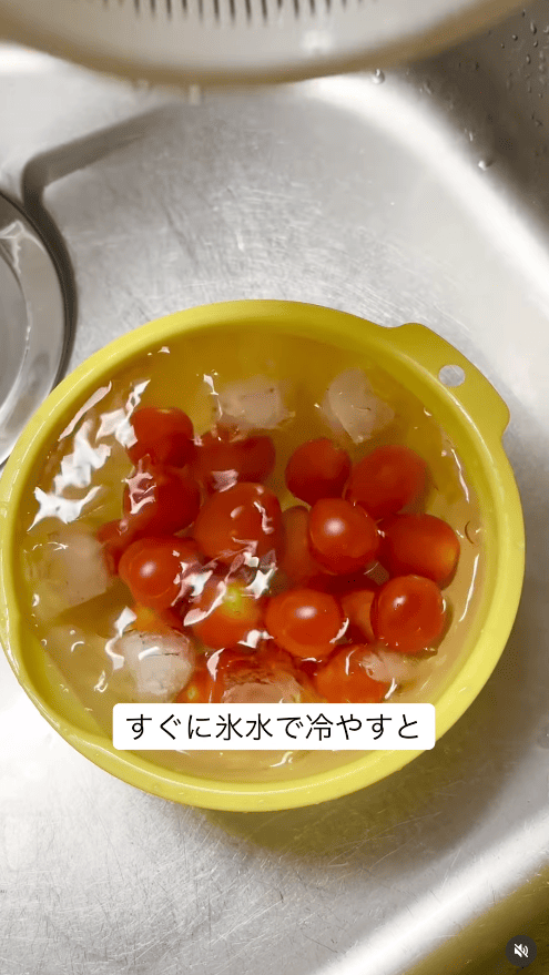 3.すぐに氷水に入れて冷やす。