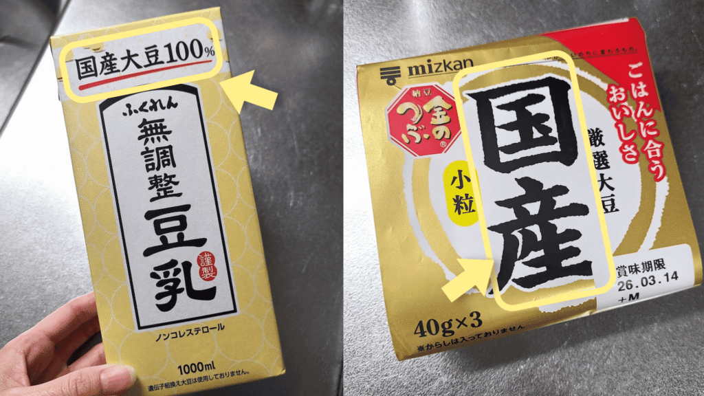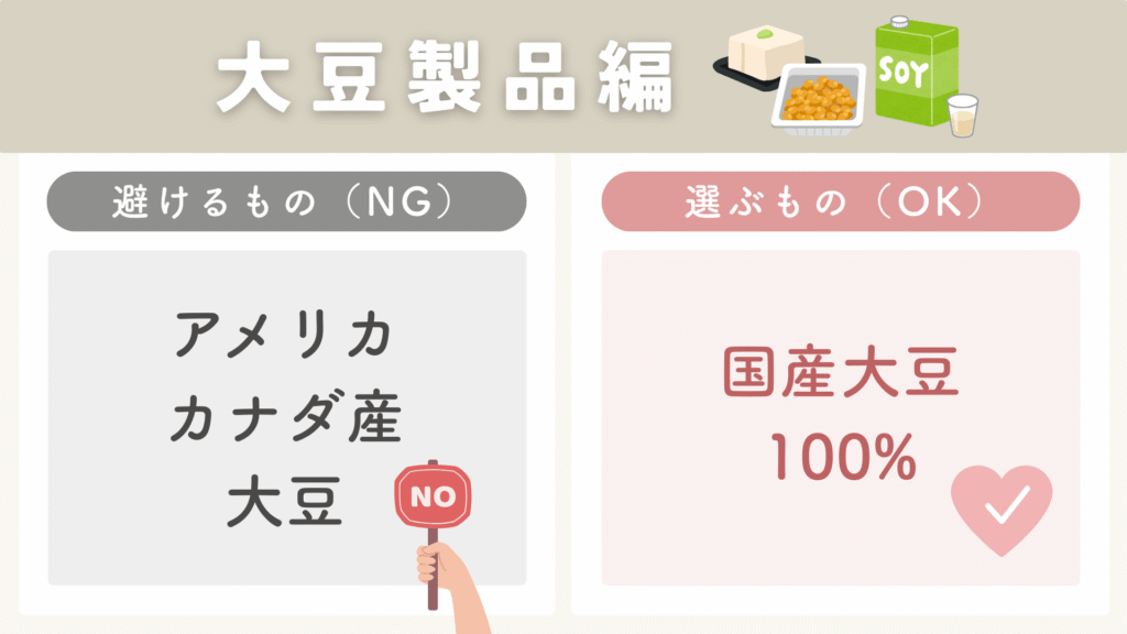 なるべく「国産大豆」のものを選ぶ