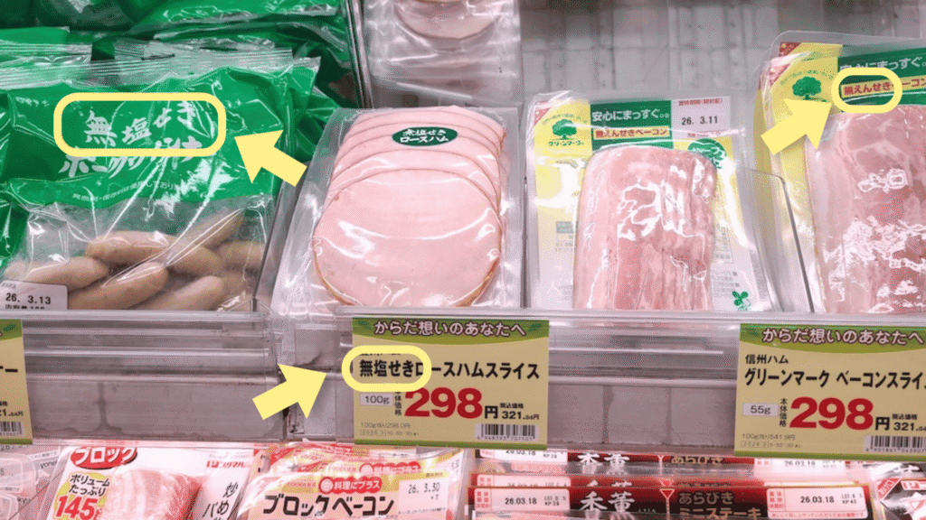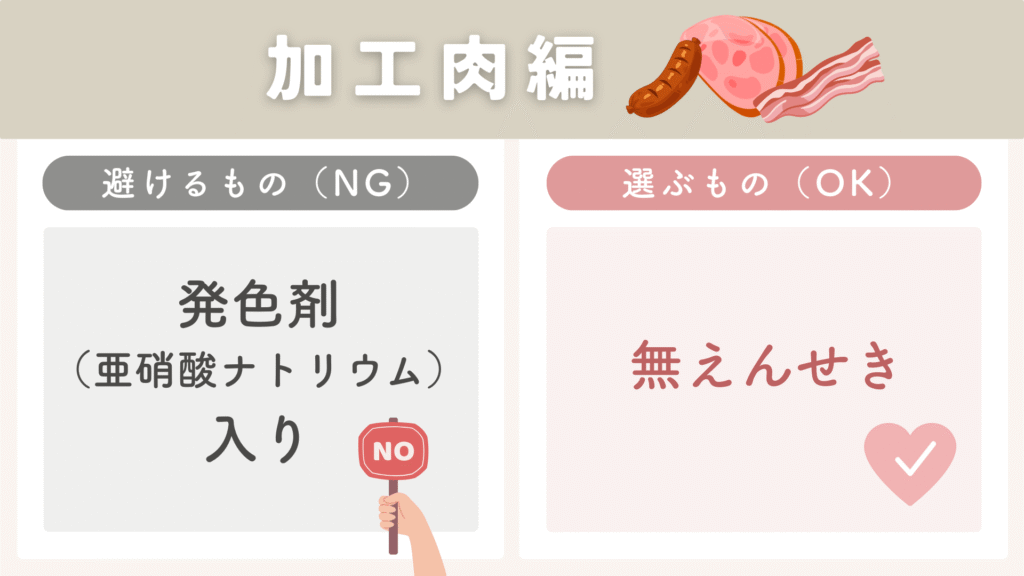 1. 加工肉:なるべく「無えんせき」を選ぶ