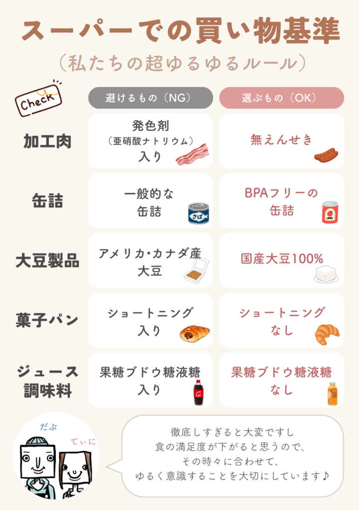 かと言って、「これが入っているものは絶対食べない」とか「この食材は絶対買わない」とかそんな目が吊り上がる形相で食材をチェックしているワケでは全くありません。