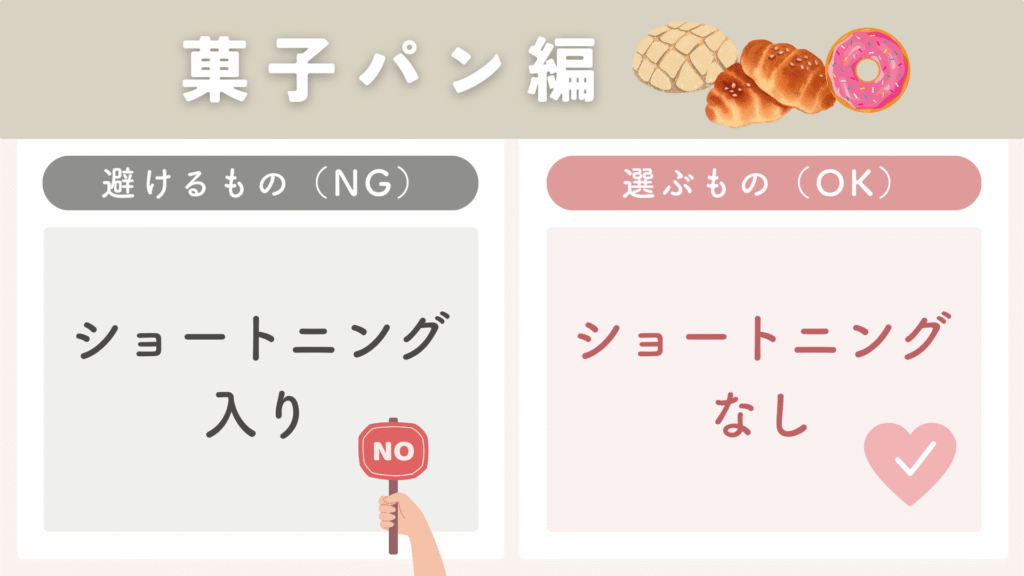 なるべく「ショートニングが入っていないもの」を選ぶ