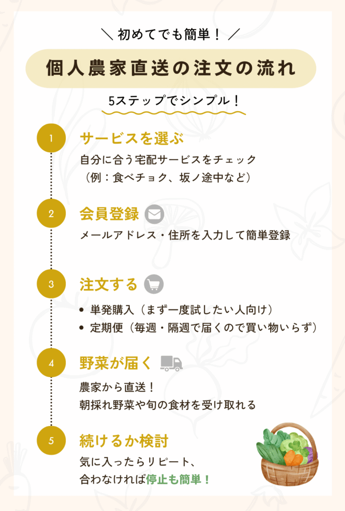 「難しそう」と感じていた方も、意外と気軽に始められるのが直送サービスの魅力です。