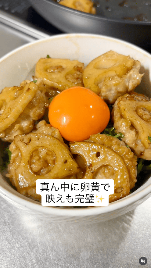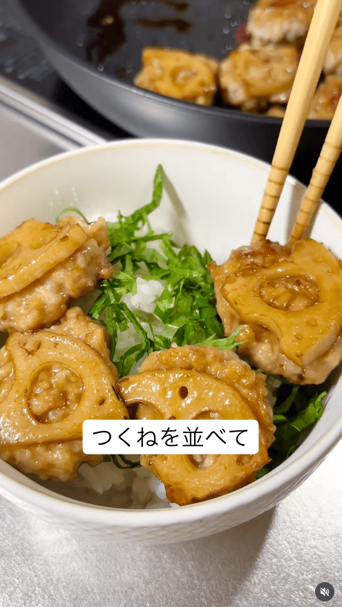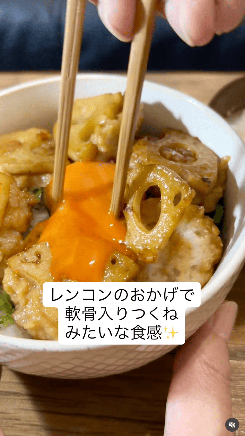 【レンコンつくね丼】シャキッと食感が楽しい!秋の月見どんぶり