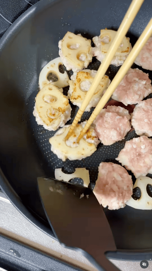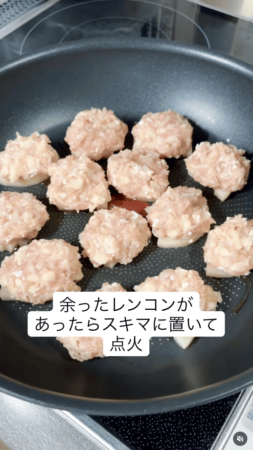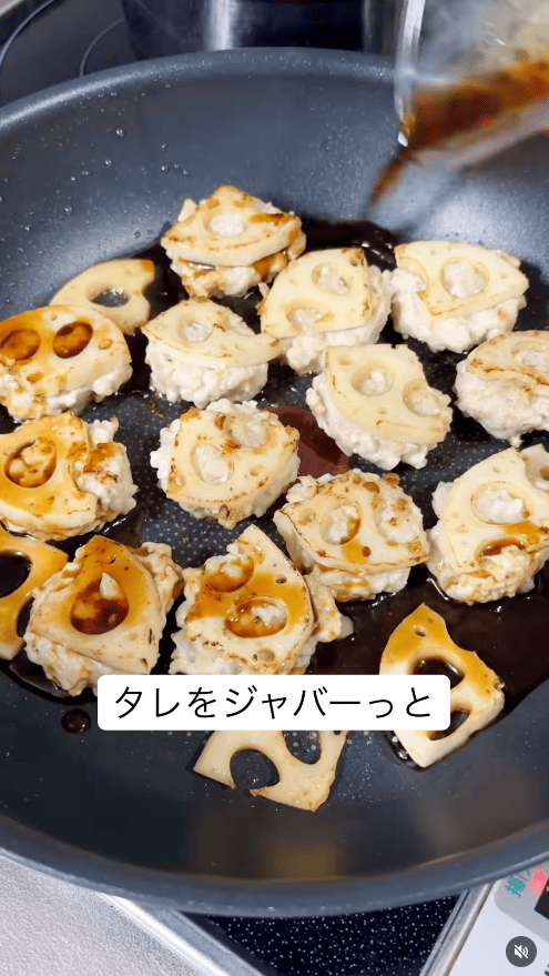レンコンを輪切りにして大きめにつくねを作れば、立派なおかずになります。