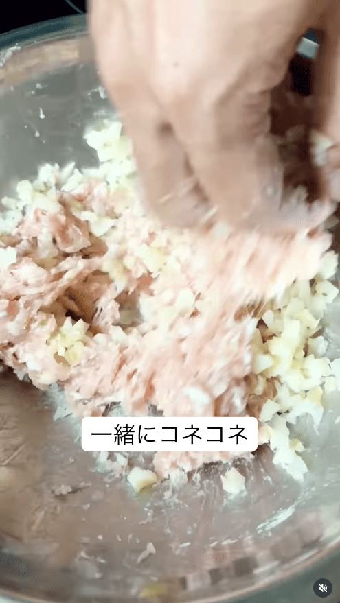 3.鶏ひき肉に塩・しょうが・片栗粉を入れてよくこねる。