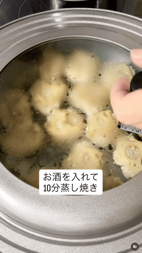 8.酒を入れて蓋をして10分ほど蒸し焼きに。