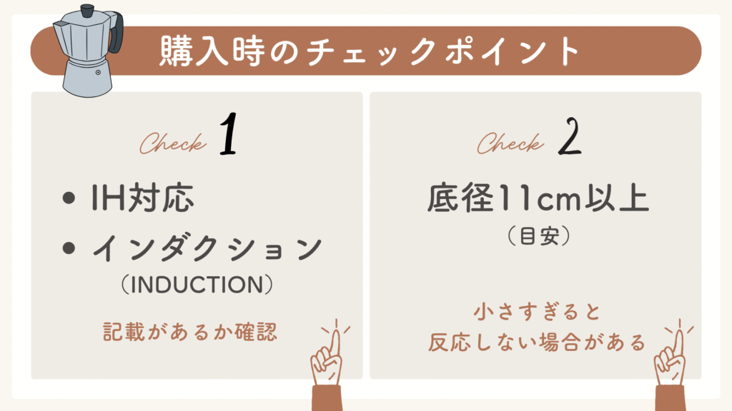 • 商品名・パッケージに「IH対応」「インダクション(Induction)」の記載があるか確認