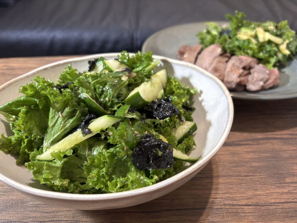 カーリーケールは今までの人生で食べたことがないような気もするのですが、思ったより苦みが少なく食べやすい味でした。
