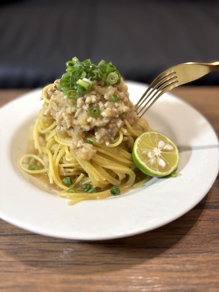 ミズナはサラダや鍋に使うことが多いイメージですが、パスタに合わせるとアクセントになっておすすめです。