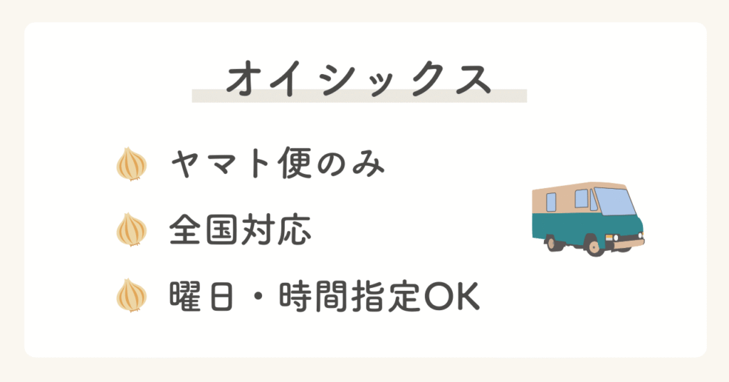 | 配送方法 | 自社便(一部地域)+ヤマト便 | ヤマト便(全国) |