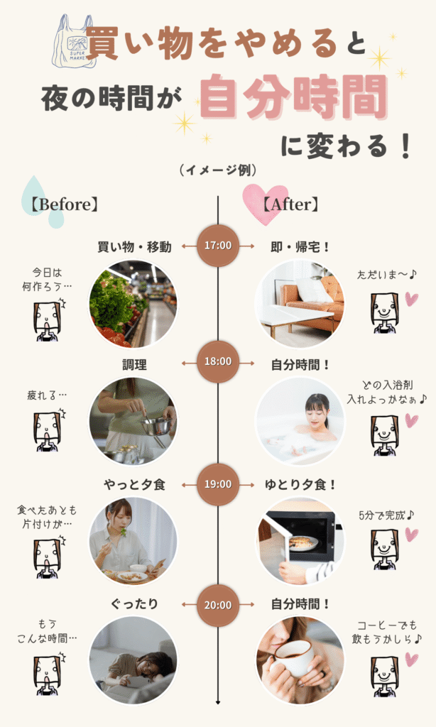 買い物に行く回数を減らすという新しい選択で、あなたらしい自由な時間を手に入れてくださいね!